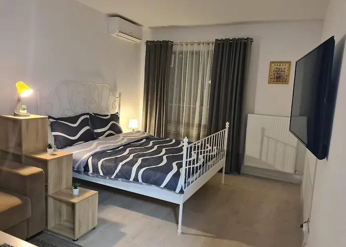 En este apartamento hay una cocina con horno de microondas, tetera y nevera, además de servicio de tetera/cafetera. El aeropuerto Internacional de Bucarest-Henri Coanda se encuentra a 25 km, mientras que la estación de autobuses Dedeman Ghencea está a 400 metros de la propiedad. Dispone de una terraza para que los huéspedes se relajen después de un día ajetreado.